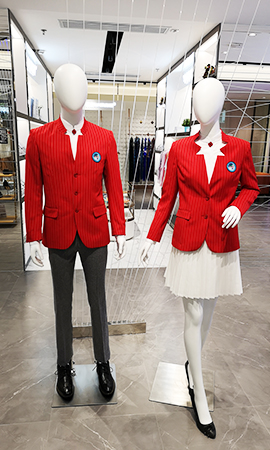 2018年11月第一屆中國(guó)國(guó)際進(jìn)口博覽會(huì),一套紅色志愿者服裝尤為引人注目。五星造型中式領(lǐng)口點(diǎn)綴四葉草紐扣別致新穎,中國(guó)紅上裝搭配灰、白色褲裙明快鮮亮,筆挺的西服、靈動(dòng)的裙擺、精致的工藝,彰顯著志愿者的專業(yè)、熱情、與活潑。而這些,正是由上服智源成衣為志愿者量身打造的。